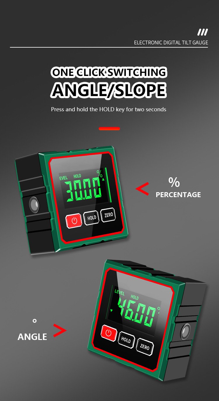 【Backlight LCD Display】 display can provide you immediate, clear, and accurate measurements in any lighting conditions. And the display will be inverted automatically when the angle finder tool is upside down.