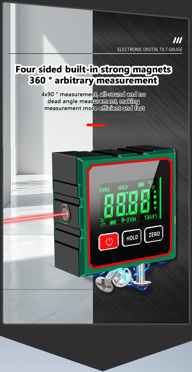 【4 Sides Strong Magnetic】The Sanliang digital angle gauge has strong magnets on four sides that makes various stick-on measurements simple and accurate. This digital angle finder magnetic can be used in applications such as woodworking, home maintenance, operation, and decoration needs. The zero button can effectively realize absolute or relative measurement.
