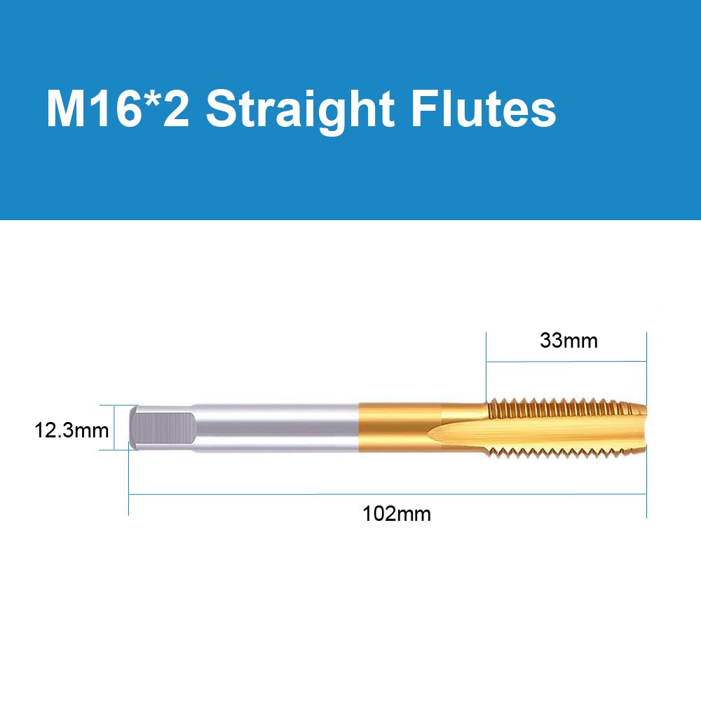 Metric Thread Tap: Thread size: M16,Thread pitch:2mm,thread length:33mm,entire length:102mm.