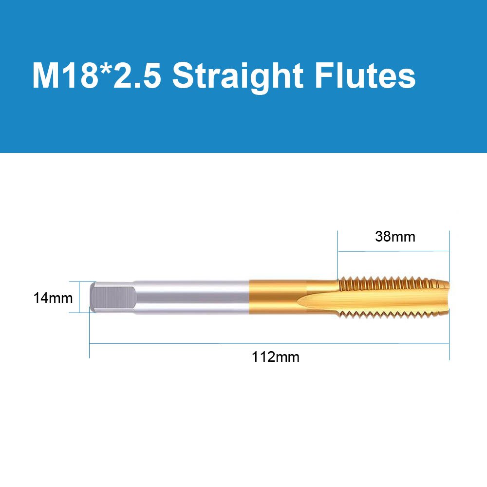 Metric Thread Tap: Thread size: M18,Thread pitch:2.5mm,thread length:38mm,entire length:112mm.