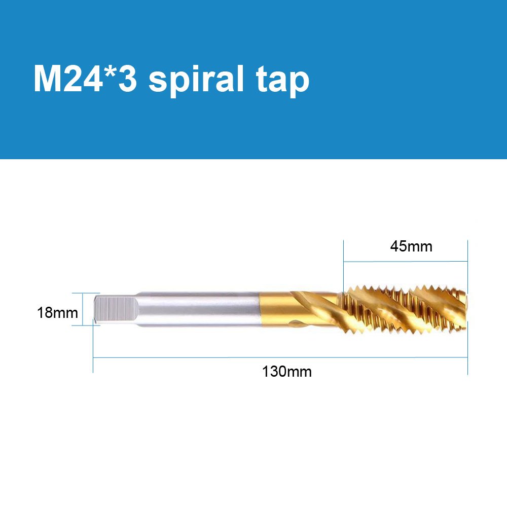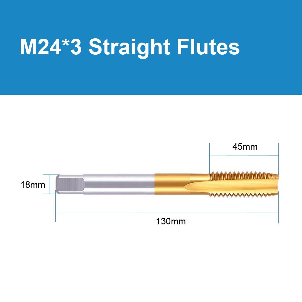 Metric Thread Tap: Thread size: M24,Thread pitch:3mm,thread length:45mm,entire length:130mm.