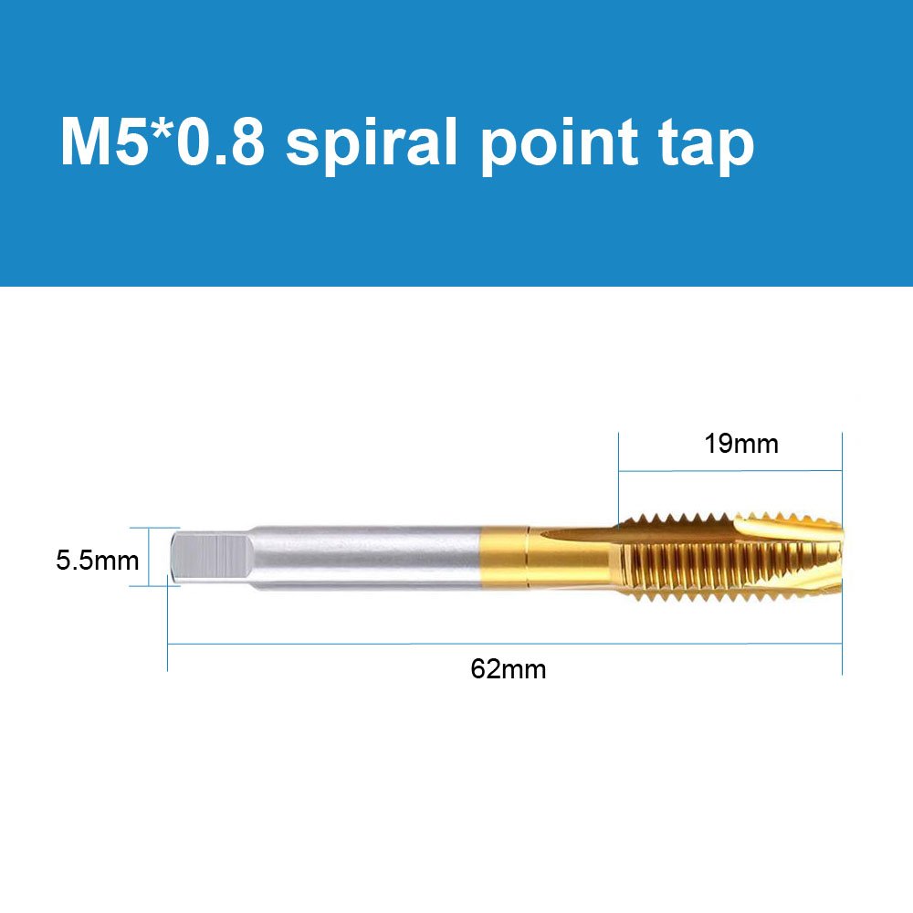 Metric Thread Tap: Thread size: M5,Thread pitch:0.8mm,thread length:19mm,entire length:62mm.